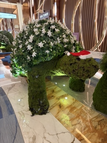 訪れたのがちょうどクリスマスシーズンだったので、天井をサンタのソリが走り抜ける特別バージョンに切り替わってました。これが本当にかわいくて、思わず足を止めて見入ってしまった。季節ごとにコンテンツが変わるらしいので、行くたびに違う体験ができそう。