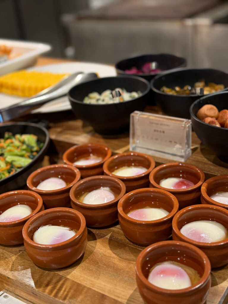 シェフが厳選した食材を使った和洋ビュッフェ形式で、メニューはなんと60種類以上。朝から豊富な選択肢が揃っており、しっかり食べたい方も軽めに済ませたい方も満足できる内容です。