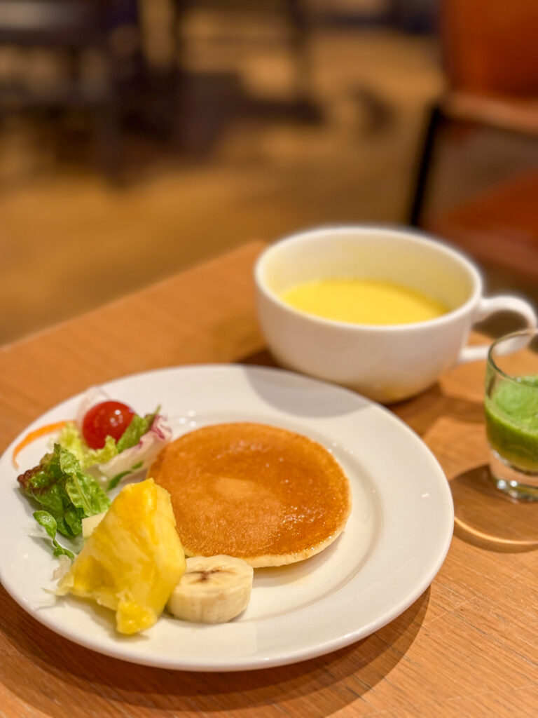 私が訪れた際は、ミニパンケーキをいただきましたが、可愛らしいサイズ感で朝から気分が上がりました。さらに飲み物の種類がとても豊富で、コーヒーや紅茶、ジュースを何杯も楽しめるのが嬉しいポイント。私はつい色々試してしまい、朝から潤って美術館巡りに向かう準備が整った!。